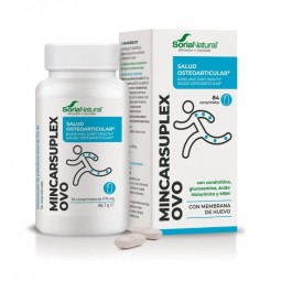 Mincar Suplex Ovo es un complemento nutricional, elaborado con una combinación de componentes que ayudan a proteger los cartílagos y las articulaciones del desgaste. Con sulfato de condroitina, sulfato de glucosamina, ácido hialurónico y metilsulfonilmetano (MSM) y membrana de huevo.